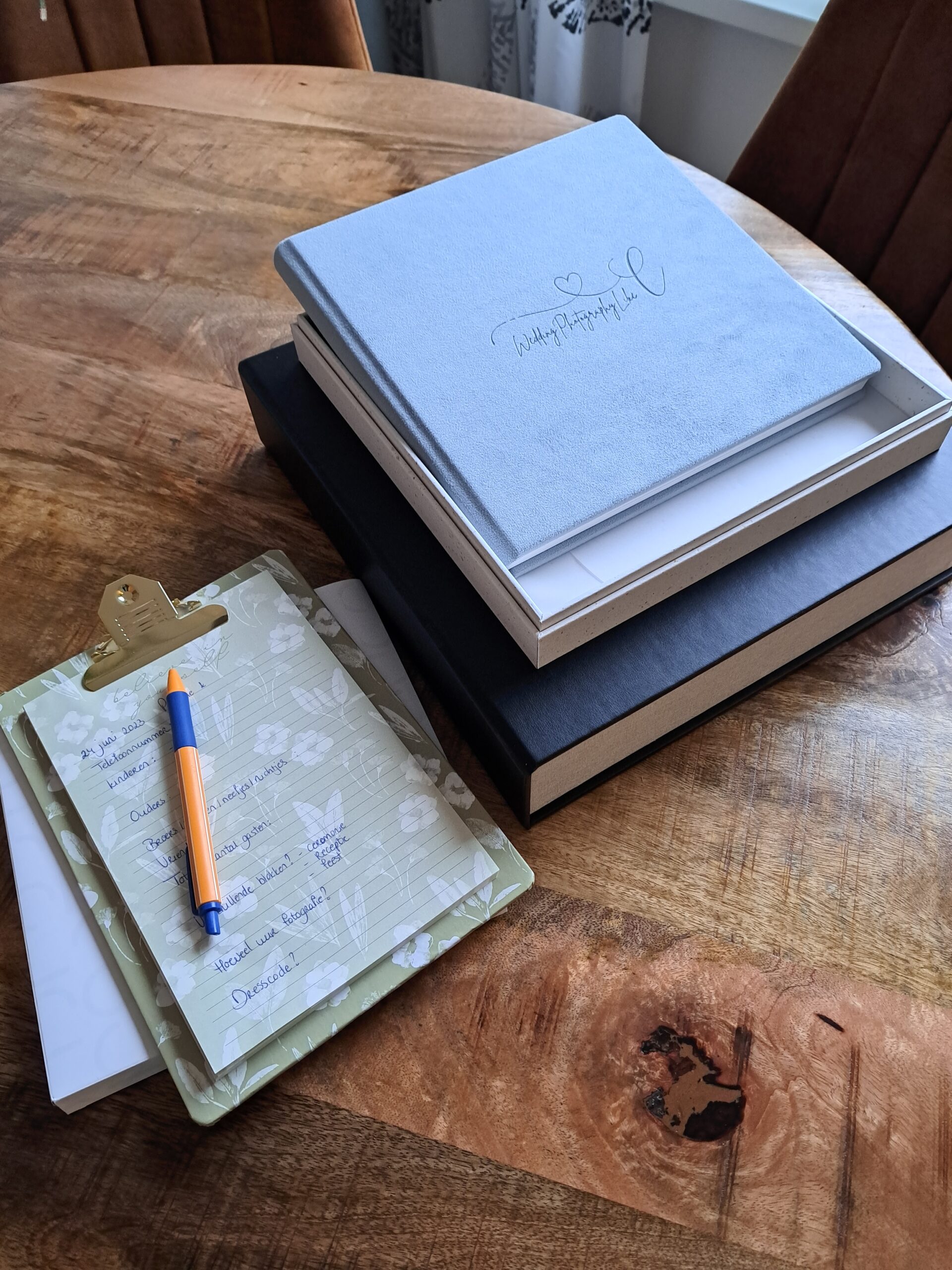 Ook kunnen we het al hebben over of jullie al weten of er na de bruiloft ook een album gemaakt moet worden. Ik heb een voorbeeldalbum en voorbeeldmateriaal waar jullie al even naar kunnen kijken.